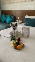 Мой номер находился на высоком этаже, и вид на залив был просто потрясающим. Стройка-облагораживание рядом не мешала. Приветствие было очень тёплым: фрукты, конфеты, открытка и мишка. Я была очень довольна.