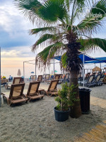 На пляже работал снек-бар, можно было перекусить в течение дня. Что очень расстроило - самые-самые дешёвые пластиковые стаканчики 0,2. Никак это не вяжется со звёздностью отеля, а также доставляет неудобства - постоянные хождения к бару и обратно. На пляже убирался очень приятный мужчина в возрасте, старался следить за чистотой. Однако, как говорится, чисто не там, где убираются, а там, где не мусорят. Многие туристы вели себя очень по-свински, от чего мусор на пляже всё же был.