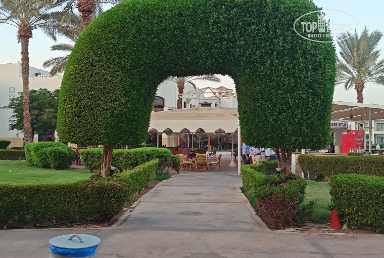Территория: Много зелени, пальмы, клумбы, цветочки. Сразу видно сколько труда и любви вложено в территорию. Небольшой рельеф, множество дорожек, это очень радует, тут как раз добавлю почему я не выбрал отель Альбатрос (бывший Риксос), у которого на всех видеобзорах территория абсолютно плоская, и без деревьев, только газон. На территории есть места как тихие уединенные там и расположенные на пересечении развлекательной части или что хуже инфраструктурной части отеля. Так корпуса с номерами 1000, могут быть расположены слишком близко к главному админ зданию, которое шумит круглые сутки (мощные кондиционеры, вентиляторы, прачечные, трансформаторы). Есть корпуса близкие к амфитеатру, но после 22.30 там все выключают. Корпуса выходящие окнами на соседний Амфорас блю, сталкиваются с шумом от их столовой, и весьма сильно слышен амфитеатр, особенно если там до 23 орут в караоке. Наш корпус 52ХХ с видом на центральный променад, был удален от основных источников шума и можно считать что был довольно тихим. Хотя в дни вечеринок на Панорама Баре, или Египетском баре Layaliana их было слышно.