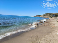 Пляж - лежаки были, вход в море - 1 метр от пляжа (на фото видно), заход в море очень напрягал, без коралок совсем плохо. Ноги скользят по разломанным плитам, волна сбивает с ног; если прилив, то ноги при выходе из воды вязнут в песке, а волна сбивает с ног. Вода в море чистейшая и теплая в сентябре.