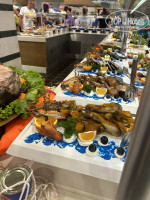 На обед можно сходить в основной ресторан, а можно перекусить в ресторане на пляже, где салаты находятся в специальной комнате с охлаждением. Около пляжа кафешки быстрого питания: есть бургеры, нагетсы, картофель фри, фрукты нарезанные в стаканчики, мороженое, лепешки (гезлеме), картофель (батат) с разными начинками и вафли с разными начинками.