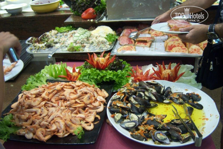 Но пару раз нас удивляли! Давали морские деликатесы - креветки, крабы, мидии, раки, клешни крабов. Это оч. вкусно, кстати официанты нормальные, довольно приветливые и росторопные. Поэтому готов поставить даже 4 бала, на чая нет, поэтому 3!!!