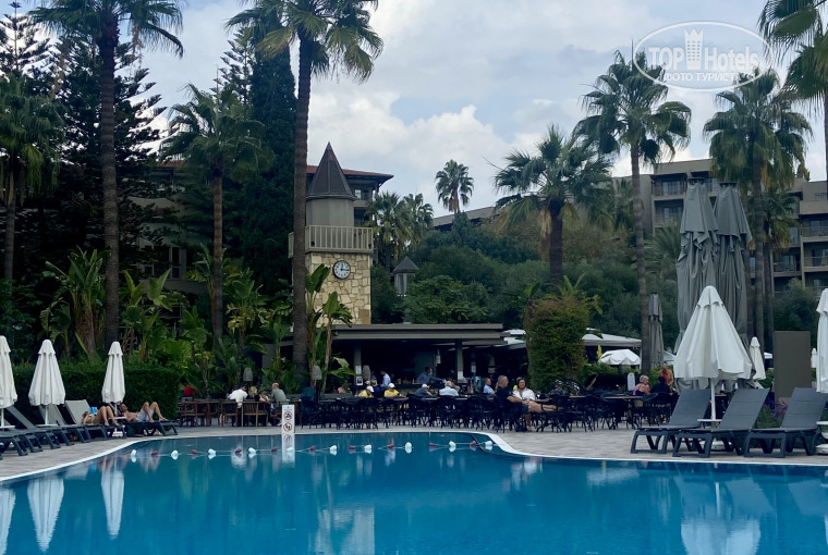 Есть бар у бассейнов. По куар коду вам принесут любимые напитки и там же в обед работает Бургер хаус-оочень вкусные бургеры, видов восемь по меню, а вечером живая музыка.