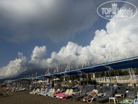 Пляж отличный, крупный песок, на входе в море мелкая галька, вход комфортный, даже ни разу не надевала тапочки, думала будет гораздо хуже.Само оборудование на пляже уже повидало виды, шезлонги разномастные, тенты потасканные, все это уже требуем замены. Ну и за место под солнцем, вернее под тентом надо побороться. После 9 утра остаются места под открытым небом без зонтов и тентов. Все самое топовое разбирают на рассвете.