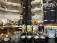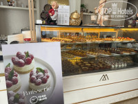 Вообще по интерьерам отель понравился, все достаточно современное, чистое и красивое, на входе стоит стол с угощениями, сладости, вода, шампанское.