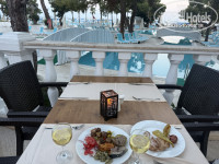 В отеле 2 а ля карт ресторана, которые можно 1 раз посетить бесплатно. Мы выбрали рыбный. Рыбу надо выбрать в момент бронирования, форель, дорада или сибас. Закуски сервируют стандартные, на десерт лимонный чизкейк. Некоторые были не довольны рестораном, но нам вполне.
