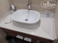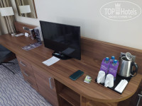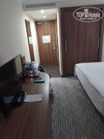 Мне дали номер 613. Сам номер нормальных размеров, удобная кровать, несколько подушек, минимальный набор, чай, кофе, вода имеется. Есть столик с креслом и стулом, где можно посидеть и попить чай или кофе и посмотреть телевизор. А вот в ванной принадлежностей для умывания не оказалось, возможно там стоит надпись, что всё что нужно, можно попросить на рецепшене, но честно, в связи с поздним прилётом, уже этого делать не хотелось, да и с утра хочется почистить зубы, а не бежать к телефону и просить всё это принести, поэтому пришлось воспользоваться своей походной косметичкой.