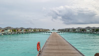 Вечером в ресторане у бассейна после ужина проходят мероприятия, были крабьи бега, живая музыка. Неплохие коктейли, кальян. Места много, но лучше пораньше придти. Вход в воду у виллы, что мы жили плавный, но есть небольшая полоса с обломками кораллов. У самого берега из-за волны вода мутно-берюзовая, через три-четыре метра прозрачная. Ребёнок (5 лет) с радостью купался. Море рядом с виллой в метрах 10. Дверь в номер со стороны моря может захлопнуться, будьте аккуратны, если захлопнули, то в номер можно попасть, если перелезть через стену у тропического душа. С северной стороны море с волнами, но небольшими. С южной стороны, где водные виллы вода спокойнее. Около водных вилл видели черепах, скатов и акул. Раньше акул и скатов прикармливали в 18 часов, когда мы отдыхали, то их перестали кормить, но они всеравно приплывали. Вроде безопасны они, но страшновато, пара акул были около трёх метров в длинну.