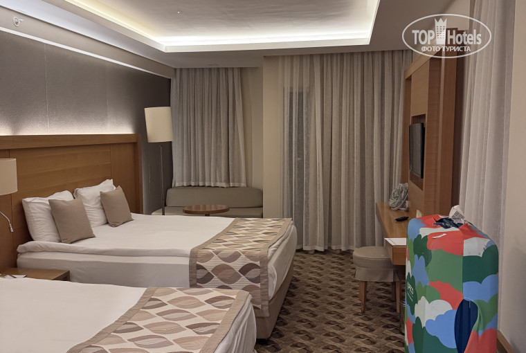 В номере 2спальная кровать, 1 спальная и диванчик. Матрас для меня достаточно мягкий, люблю более твердые ортопедические, но в целом неплохой.