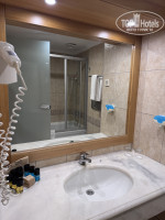 В санузле не душевая кабина, а ванна. Напор воды хороший. Из косметики были шампунь, кондиционер, гель для душа и шапочки для душа. Кондиционер очень хороший, впервые встретила такой в отеле. Не было ватных дисков и палочек, но я брала свои.