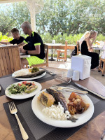 Там полноценно можно покушать - есть несколько горячих блюд, суп, салаты, фрукты, сыр, десерты.