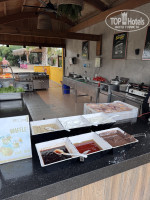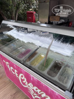 Днем много точек питания на территории: лепешки, картошка с начинкой, мороженое, стаканчики с фруктами, вафли, бургеры и тд, а также приятный снек-ресторан с полноценным обедом.