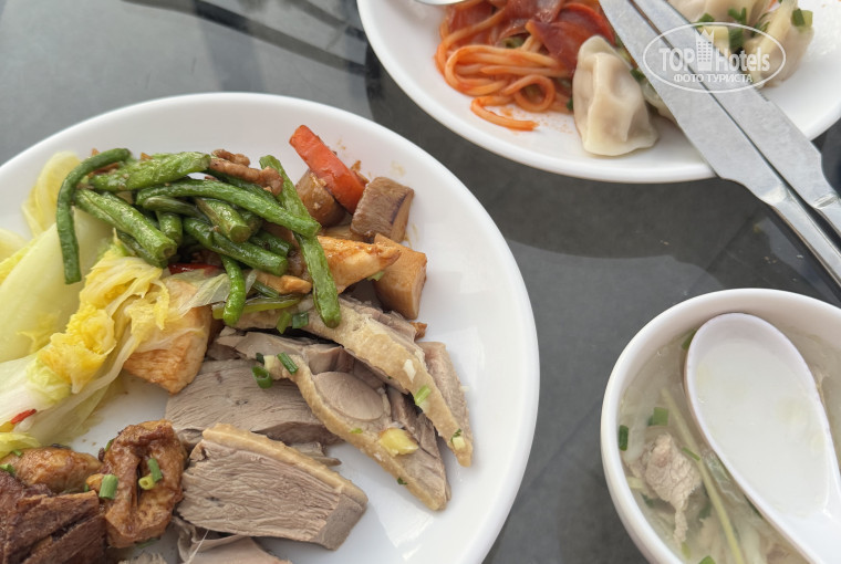 Мы брали завтрак и ужин. Все очень вкусно, правда есть уклон в сторону местной кухни, европейских блюд маловато. Выбор меньше, чем в Турции или Египте, но большинство блюд очень вкусные. Бывала и экзотика по типу куриных лапок, но такое мы не ели. На ужин выдают по бутылке пива. Есть отличные соки и кофе, чай. Как такового бара в отеле нет, но необходимое можно докупить в магазинчике на первом этаже.