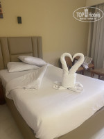 Номер супер,мебель и сантехника старовата,но всё исправно и видно,что лет 20 назад это всё было сделано на совесть!балкон супер,просторный с сушилкой,гамаком и видом на море,для меня главное тишина🙏🏻я впервые за все разы отдыха спала без беруш 🫶постель удобная,приятная,халаты и тапочки,всё супер