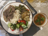 Основной ресторан, питание разнообразное, много фруктов (апельсин, сливы, гуава, финики, инжир, яблоки, груши, дыни, виноград, манго). Из мясного : курица, говядина, утка, индейка. Рыбы и морепродуктов не много. Гарнир : рис, картошка, макароны, кус-кус. В обед 2 вида супов, к ним заправки различные. Много выпечки, сладостей. Из овощей : огурцы, помидоры, перец, капуста. Маринованные овощи, на гриле. Из напитков : чай, кофе, соки пакетированные. Есть отдельно детская зона в ресторане. И зона 16+, где нет детей. Три ресторана а-ля карт: итальянский (на пляже), 2 ресторана находятся на 1м этаже отеля Алора. Необходима предварительная запись на ресепшен за 3 дня до планируемой даты визита в ресторан.