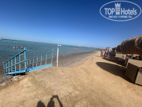 На пляже песок, большие зонты, лежаков свободных достаточно в любое время. Ходить и занимать их в 6 утра не приходилось и это радует) музыка, wi-fi отлично ловит, есть свежавыжатые соки за доп плату - 4$, смена полотенец прямо на пляже. Огорчил конечно вход в море, камни, детям однозначно нужна специальная обувь, так как повредили ноги, взрослые купались и так, илистое дно, вода сразу как заходишь становится мутной. Очень мелко, для детей отлично, для взрослых не очень. На пляже в этот сезон ветрено, отливы и приливы, вода уходит на много метров вперед и становится еще мельче. Много предлагают экскурсий, фото, массаж, fish-spa, но ненавязчиво. 2 раза в день игры в волейбол, в воде гимнастика, 1 раз бочча. Есть бар, чай/кофе, газированные напитки, алкоголь. Также можно прокатиться на верблюде - 10$.