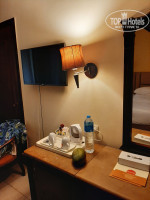 Номерной фонд не новый, но персонал готов помочь в решении проблем. Главное не нервничать и быть на позитиве. Номер у нас был на третьем этаже. В номере есть сейф, чайник, холодильник. Воду 1,5 литра на троих, чай, кофе растворимое, сахар дополняют каждый день. На террассе- лоджии есть столик, два кресла, сушилка для одежды. Звукоизоляция хорошая, соседей не слушали. Если честно, то не часто и видели.