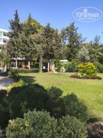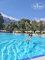 Номер: у нас был номер стандарт с видом на море самый крайний, ближайший к лестнице, что обеспечило быстрый спуск по лестнице с запасного выхода. В номере всё рабочее, чистое. Есть чайно-кофейный набор, напитки, пиво. тапочки. В ванной мыло и гель в дозаторе. Виды из номера шикарные: впереди море, зелень деревьев, с другой стороны величественные горы - наслаждение для глаз просто! Не менее красивая территория отеля: бегают курочки, петушки, кролики. В начале октября бассейн (он почти как инфинити) ещё вполне терпимый по температуре был. Около него с 10 утра звучала музыка. Для тех, кто хочет спокойствия, есть бассейн для взрослых, он находится при въезде у охраны. Вообще эта территория перед отелем вызывает восхищение: золотая статуя оленя, высокие пальмы, а вечером красивая подсветка всего этого.