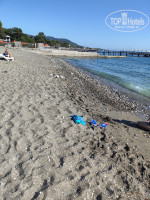 Пляж: песчано-галечный. Заход с крупной гладкой галькой. Представитель отеля не сказал, что весной будут делать для более удобного входа в море настил с поручнями. Пирс такой крепкий, прям бетонный. На конце пирса есть даже душ и платные кабаны. На пляже лежаки стоят на комфортном друг от друга расстоянии.