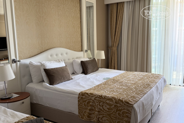 Номер похож на малогабаритную однушку: прихожая, гостиная, спальня, ванная. Без кухни. Балкон французский. Открывается половина панорамного окна. Примерно на высоту один метр стеклянное ограждение. Можно только курить. Вещи сушить не получится.