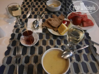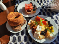 После завтрака начинал работать лобби-бар, алкогольные напитки местного производства, соки из автомата, типа юппи, чай, кофе. С 12 до 14 приходит женщина и печёт вкусные лепёшки гёзлеме с сыром и зеленью. Еще, тут же повар печёт пончики, стоит варенье и посыпка: пудра с корицей.
