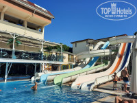 Территория отеля небольшая, большую часть занимает бассейн с 5-тью горками. Горки работали два раза в день продолжительное время. Бассейн чистили каждый день вечером. Есть ещё маленький детский бассейн. Так же на территории отеля есть хамам, сувенирный магазин, магазин шуб, кальянная зона, и, прилавок со свежевыжатым соком и мороженым (это уже платно). Территория небольшая, но чистая и ухоженная, много зелени, пальмы, цветы. Лежаки у бассейна новые, удобные, их достаточное количество.