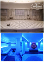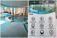 Море с полосой мелкой гальки, у берега не глубоко, дно твердое, без илистого песка, нет мути, даже когда сильно накатывают волны. Мелкие рыбешки резвятся в прозрачной воде на солнышке. В тёмное время суток под пирсом столпотворение здоровенных рыбин, интересно за ними наблюдать. Замер воды в море показал 23-24 градуса, как альтернатива ему подогреваемый бассейн на открытом воздухе, уже в 9 утра - 31 градус. Крытый, с детской и джакузи чашами, чуть похолоднее.