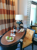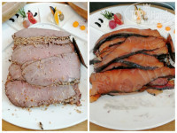 В ассортименте уделяется особое внимание детскому и диет столу. Молочные каши, бульонные супы (курица разделена на волокна, мелкие кусочки говядины), гречка, булгур, рис, варёные овощи. Из русской кухни - сырники, пельмени, борщ. Мясо преобладает над рыбным горячим, закормили телятиной, бараниной, птицей. Но и рыбы в рыбный день было навалом, причём нигде ранее я таких интересных сочетаний вкусов не пробовала - солёная красная рыба в обсыпке из цветных тминов, лепестков роз, на угле. Запечённый лосось, завернутый в трубочки из водорослей нори. Морские гады и рыба холодного копчения всегда в наличии.