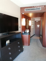Всё в нем продумано для комфорта постояльцев, а это: большой стол и стул, диванчик, оттоманка, вместительный комод, шкафы с множеством вешалок, внутри: сейф, гладильная доска и утюг, тапки/халаты, пляжная сумка.