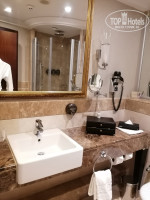 В санузле ванна, душевая кабина с опцией тропического ливня, рядом с умывальником на столешнице ларь с гигиеническими принадлежностями: ватные спонжики и палочки, расческа, наборы зубные, для бритья и маникюра.