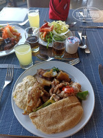 Завтрак - яйчница,фасоль в красном соусе,сосиски куриные и аля мясные,пюре,вареные яйца,тосты,всевозможные нарезки,на гриле баклажан фалафель,блинчики,чай кофе,овощи.