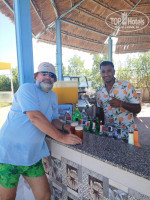 Хочешь сам подходишь к бару и просишь налить ( ром,виски,текилу,водка,пиво, вино красное и белое,чай,кофе из кофе машины)ходит прикольный парень,,Женя,, предлагает свежевыжетые соки по 2 евро.