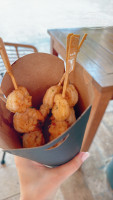 Уличная станция 12:00–16:00 с шаурмой, мексиканской кухней, вафлями с мороженым, курица в панировке (как «Ростикс»), креветками на гриле (маринованные, можно сколько угодно; под закрытие сезона ожидание максимум 15 минут).