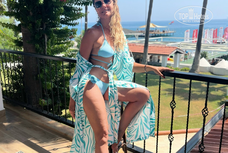 Пляж замечательный , шезлонги стоят на расстоянии, можно и на лужайке, очень приятно сидеть на пирсе на ветерке и с книжкой, и с коктейлем. Все шезлонги исправные, зонтики тоже. Проблема в туристах - занимают в 3 утра. Потому что в 12 ночи все шезлонги чистые, а в 5.30 уже заняты вещами. Мистика! Бассейны есть 3 штуки, мы не купались, потому что море было 28/29 градусов. Заход в море плавный удобный, есть мостик и пирс, все ныряют с кувырками и солдатиками. Душевые есть, их несколько, туалет не на пляже, но недалеко, не всегда чисто. Мы прошли по пляжной линии вправо, наш пляж лучший, на других - шезлонги вплотную, на пирсе негде ступить.