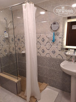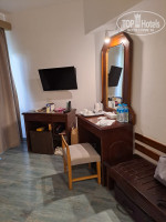 Номер стандарт на первом этаже, вид на сад (дорожка к морю). Все работало. В номере две отдельных кровати, третью принесли. В номере холодильник, чайник, чашки. Чай, кофе, сахар, вода, все это пополнялось. В ванной гельки, шампуньки, мыльцо. Душевая маленькая, занавеска. Очень неудобно, постоянно думаешь, чтобы вода на пол не протекала. Полотенца в полном комплекте, чего не хватало, обязательно в течение дня приносилось. Балкончик маленький, приспособлений для сушки белья нет. С собой были веревки, прищепки. Каждый день оставляли или шоколад, или лиры. Слонов накрутит, промахнет, но хотелось бы чтобы освежили унитаз с раковиной(