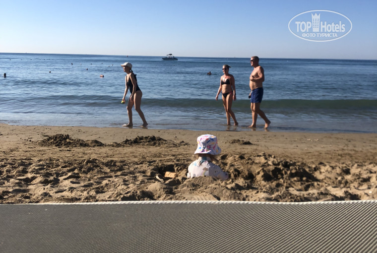 Имеется куар код на пляже у каждого зонтика, отсканировав который, вам поднесут напитки, есть зонирование отеля, 16+ как на пляже, так и в ресторане, а также есть свой бассейн для взрослых со своим баром, есть лежаки как на песке, так и на газоне (расположение у променада), они находятся до променада на своей территории, но в уютном месте под соснами, в этой же зоне также имеются кабаны, газон идеальный везде, здесь в тени деревьев оборудовали площадку для отдыха.