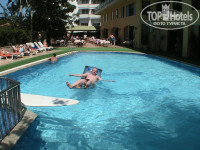 Территория: зеленая, примыкает к городскому саду и свой типа садик (мы там и загорали). Лежаком у басейна хватало не всегда, занимали просто перед завтраком. Басейн с детской секцией. Ресторан открытый и закрытый, мест не мерено. До моря метров 100-150 пляж муниципальный (грязновато), лучше за 2 лиры съездить в Ичмелер. Рядом с отелем маркет Мигрос (там персики супер), брали на вкусности всякие в номер (персонал не пртивился или делал вид что не видит).