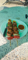 Около тихого бассейна (среди бунгало и вилл) работает кафе. Постоянно брал пиво. Само собой дороже, чем в 7/11, но терпимо - 65 бат. Заказывал шашлык (на фото), цена 100 бат. Вкусный. Можно заказать наггетсы, картошку фри, колбаски и проч.