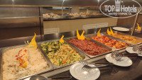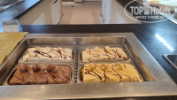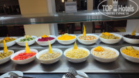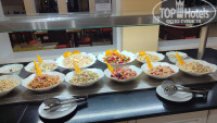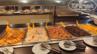 Мы ожидали гораздо худшего, везли с собой еду, кипятильник, но оказалось всё хорошо! Еда есть любая:курица, говядина, свинина, креветки, пюре, фри, макароны, подливки, наггетсы, ветчина, хамон, сыры, орехи, булки, пирожные, мороженное, фрукты, могу что то забыть. Очень вкусные коктейли у бассейна. Если хотите, чтоб у вас всегда были приборы, бокалы и тд-найдите на ужине официанта Роберту, фото прикрепили, дайте ему на чай и он будет каждый вечер вас встречать, как родных. Вкусное мясо жарят на гриле в столовой, но старайтесь приходить к началу трапезы-выбор больше и очереди меньше. На завтрак кофе и чай нужно просить у официанта, или самим брать в баре где ресепшн. Очень вкусный кофе Эспаньол, но просите рома меньше наливать, а это это будет ром с кофе, а не кофе с ромом😁