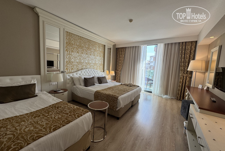 Номер бронировали в Главном корпусе стандарт без определенного вида, соответственно понимали, что дадут любой. Нам достался номер на 2 этаже с видом на соседние дома, было очень тихо и даже кусочек моря было видно))) Заселили только в 12 часов. Номер обычный, есть всё необходимое, в мини-баре вода, минералка, кола, фанта, спрайт, пиво, чайная станция - всё пополняют ежедневно. Есть тапочки, шампунь, кондиционер и лосьон для тела в индивидуальных бутылочках, мыло, ватные палочки, шапочка для душа, всё также добавляют по мере необходимости. Уборка каждый день. Кровать большая и удобная, по 3 пары подушек, но все не очень удобные.