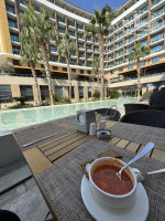 По зимней концепции в отеле работало всё на территории главного корпуса, кроме аля-карт ресторанов. По питанию - полный восторг: на завтраках и ужинах всегда была слабосоленая красная рыба, сыр с плесенью и как-то на ужине пармезан, часто на ужинах в закусках мидии, кальмары и креветки. На ужинах всегда рыба на гриле 2 видов, 3 раза были стейки красной рыбы на гриле. Помимо этого конечно кура в разных исполнениях, котлетки, разное другое мясо. Всё очень вкусно. Всего мы даже не попробовали. Красивые подачи блюд от повара на индивидуальных тарелках, а также стандартный шведский стол. Персонал молодцы, особенно на завтраке и ужине, только присел и сразу практически подходят к столу и предлагают принести напитки. Нет никакой дискриминации по национальному признаку (как к сожалению это периодически бывает в отелях), поэтому за это тоже большой плюсик! Практически все говорят по русски, много мне показалось казахов наверно работает - потому что они на чистом русском говорят. Напитки алкогольные: есть шампанское - мне понравилось, вино белое ужасное, красное муж пробовал - сказал вроде норм, пиво тоже нормальное вроде. Из импортных напитков был виски Ballantines и Red Label, джин Gordon's, ром Havana Club, водка Абсолют и Смирнофф. Это всё в баре Панорама. Но это надо прямо просить. Если не скажешь, наливают конечно местное всё. Есть снэк - чипсы и смесь из орешков. Также в отеле бесплатный Starbucks. Ланч боксы не дают, но ночью также можно перекусить или взять с собой - есть 2 вида сэндвичей в ночном баре.