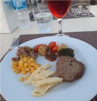 Вечером ежедневно на гриле рыба и индейка плюс овощи. В мармитах аналогичные обеденным блюда плюс меняются - пюре, запечённый в кожуре картофель, отварная рыба, фаршированные перцы, что-то ещё. Плюс живая готовка, в частности котлетки-кёфте. Короче, всего и не упомнишь. Говядина в разных видах есть ежедневно, а стейки не являются национальной турецкой едой.