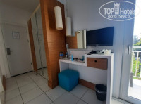 Нет халатов и тапочек (кроме люксов и сьютов). Нет чайников: все напитки в барах, один из которых круглосуточный. Нет утюгов, но они и не нужны: некуда наряжаться. Отель клубного типа, все ходят попросту. Если очень нужно, можно отдать вещь в прачечную погладить за деньги (за все годы не видела, чтобы кто-то пользовался).