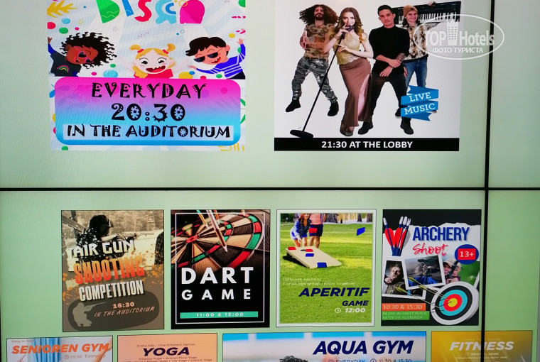 На сегодняшний момент лучшая из всех отелей, где я побывала, охватывает широкий спектр спортивных развлечений: стрельба из лука и винтовки, бочча, дартс и игры, которых я нигде ранее не встречала. А главное команда замечательных молодых людей, которые развлекали гостей, весёлые, но в то же время тактичные, работают не спустя рукава, а с огоньком. Организовали по своей инициативе чествование моей сестры в день ее рождения, узнав от отдыхающих об этом, попросили выступающую группу артистов озвучить поздравление при всех собравшихся, люди хлопали и кричали: «Happy Birthday», это было неожиданно, незабываемо. Мы не информировали менеджеров о дне рождения, не любим к себе излишнего внимания, но придя в а-ля карт ресторан, увидели шарики, цветы и тортик к дате, то есть администрация поздравила нас с праздником без напоминаний.