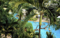 В отель приехали к вечеру, сразу нас поселили в номер. Поэтому осмотрелись только утром, только попадаешь на территорию сразу все радует глаз. Отель выполнен в тайском стиле. Большое открытое лобби. Много водоемов с рыбками. Корпуса образуют закрытый дворик. Номера с видом на сад и бассейн. Отдельно за забором виллы. Бассейн с большой акваторией, детской зоной. Есть инфинити бассейн у пляжа. На пляже высокие пальмы, но не кокосовые. Много лежаков. Всегда были свободные места. К выходным прибавлялось местных отдыхающих, они предпочитали отдых у бассейна.