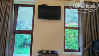 Номера в двухэтажных коттеджах (по два номера на этаже, у каждого отдельный вход). У номеров на вторых этажах предусмотрен балкон, на первых этажах терраса с собственным садиком, очень уютно отгороженным от соседних номеров стеной зелени. У нас был номер на первом этаже (номер 204). Номер не новый, но чистый.