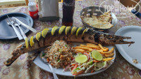 Когда заказываешь рыбу, тебе сначала приносят разнообразную свежую рыбу на подносе, и ты сам выбираешь, какую именно хочешь. Цена будет зависеть от веса. Рыба существенно дороже, чем другие блюда в меню, но значительно дешевле, чем в других странах. Например, лобстер нам обошелся в 2700, барракуда 1600 (все рыбные блюда идут сразу с гарниром: рис, картофель фри, овощной салат или нарезка).
