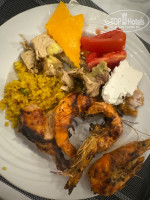 Мяса большой выбор, говядина, курица, утка, индейка. Говяжья печень просто🔥❤️долма , шашлык. Рыба всякая, какой только не было. Кальмары, креветки, осьминог это в рыбный день в большом количестве. Был день и роллы разные были, вкусные.