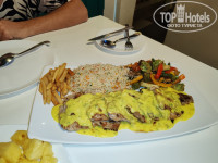 Мы обедали и ужинали в кафе отеля каждый день. Готовят отлично. Бармены говорят по-русски. Персонал отличный, особенно Джимми ! Пожалуй без Джимми наш отдых был бы не таким комфортным. Все расскажет, поможет, объяснит.