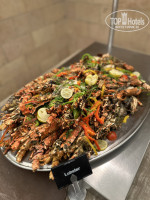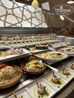Разнообразное, вкусная рыба, мясо, овощи, сыры. Вроде бы в основном ресторане небольшие зоны с выкладкой блюд, но ассортимент есть. Меняется через день, но в целом всегда одно и тоже.
